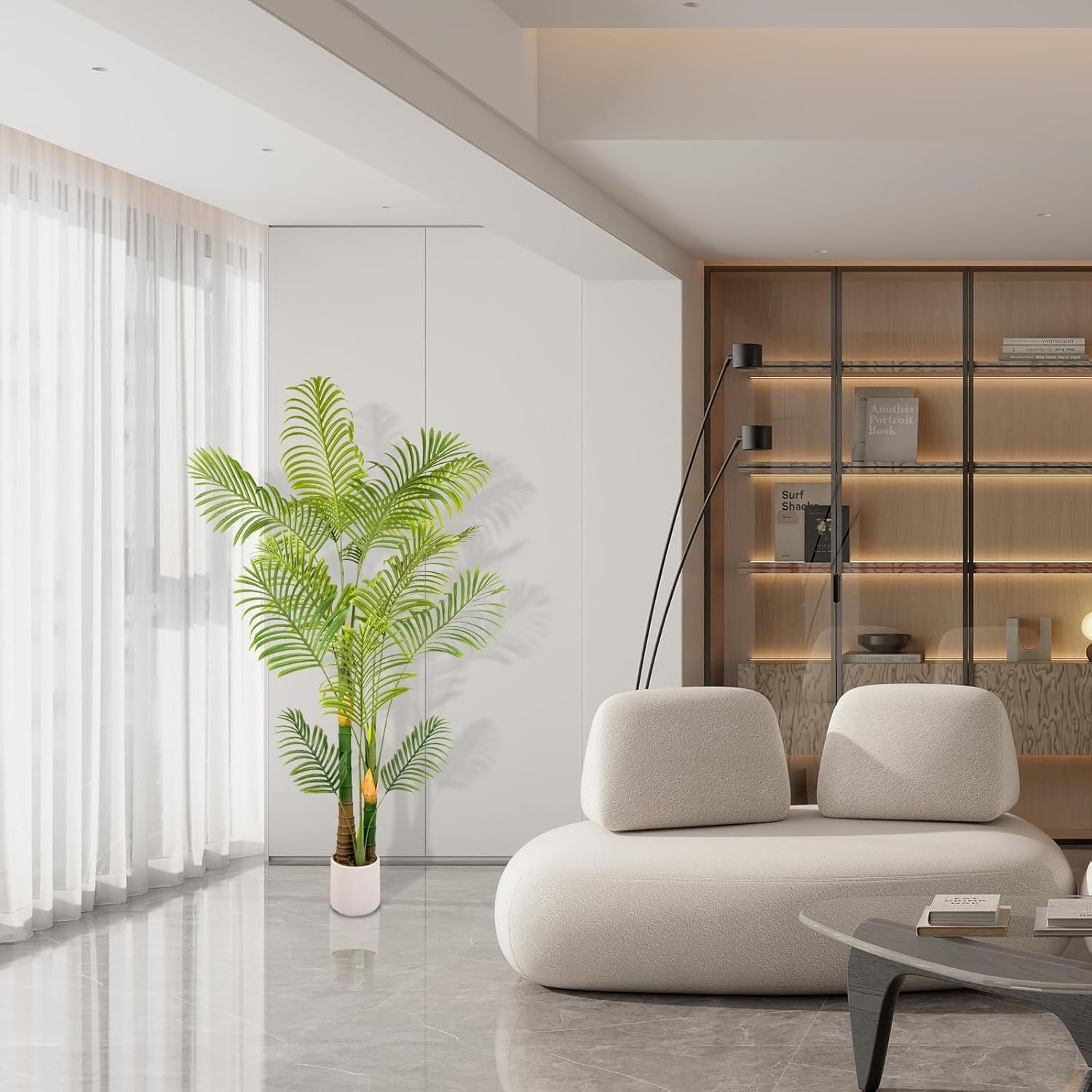 - ๐ด Luxury Artificial Palm Tree with Planter & Free Moss โ Elevate your home decor instantly! MCTYBBโs artificial palm tree arrives pre-potted in a sleek white planter, comes with free faux mossโno extra purchases needed. Perfect for patio decor, poolside lounging, or adding tropical vibes to room decor in living rooms, offices, or bedrooms.