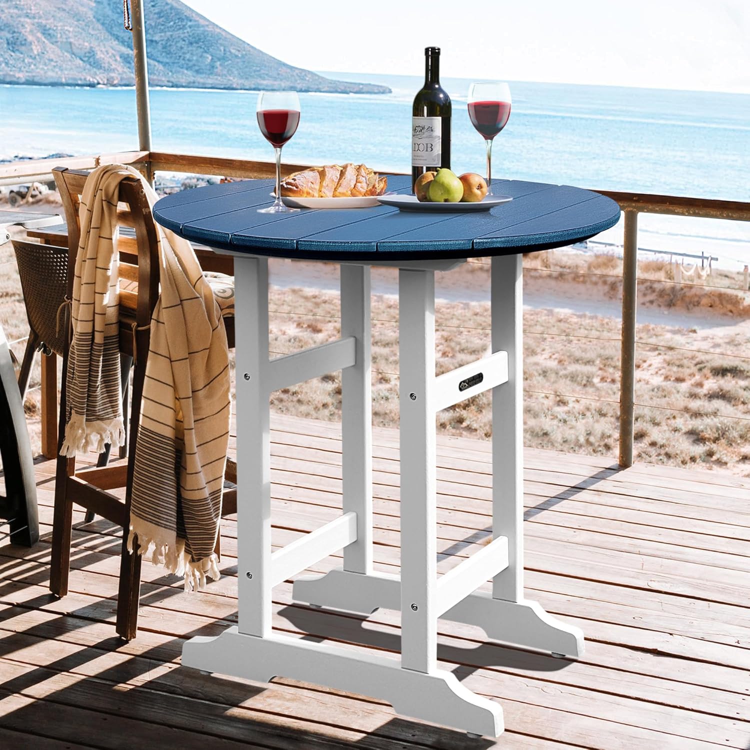 Patio Bar Tables, Outdoor Bar Table, Wather Resistant 35" Round Outdoor Bar HDPE High Adirondack Side Table Plastic Height Table Pub for Balcony, Garden, Pool, Backyard, Fire Pit, Lawn