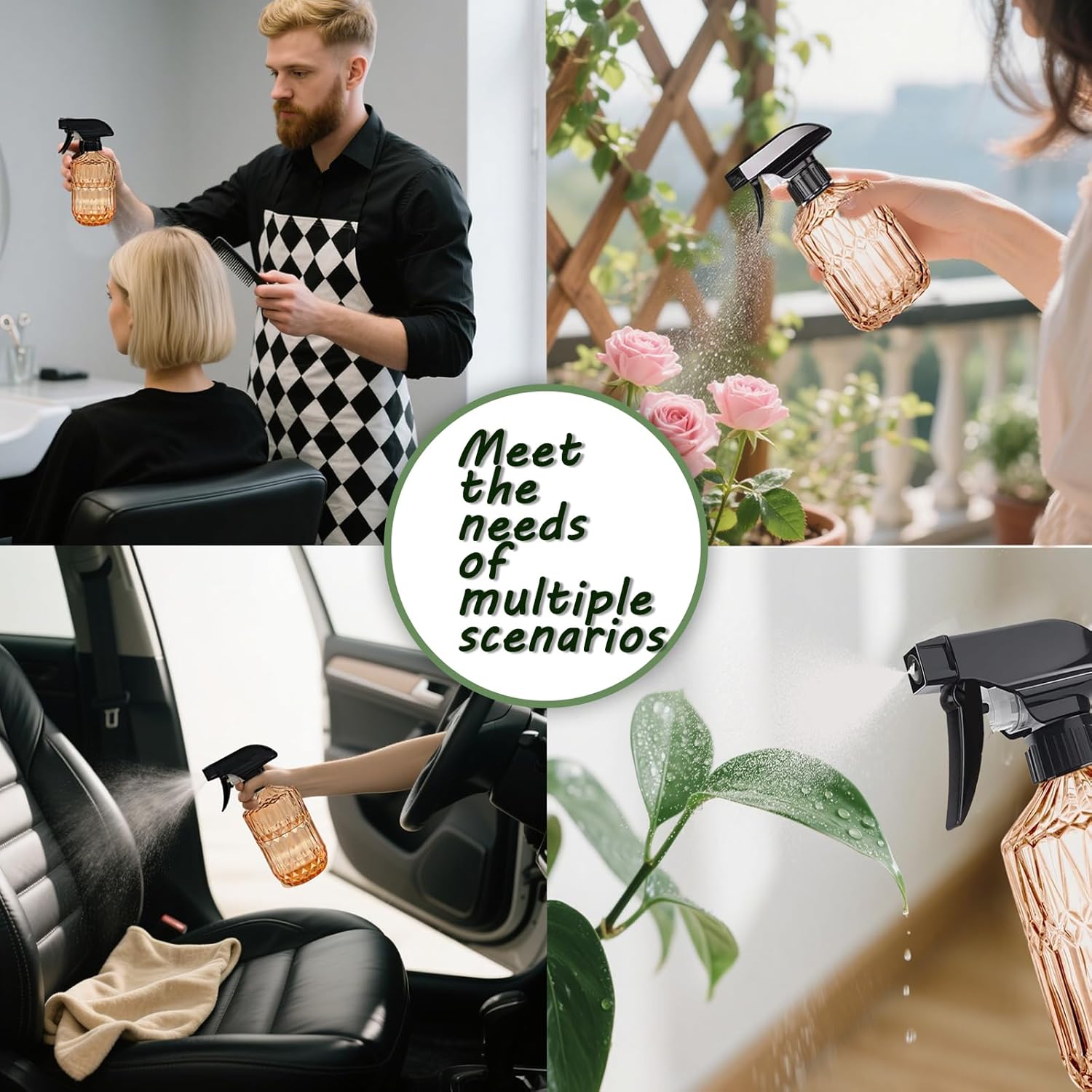 Empty Glass Spray Bottles, 15oz Refillable Water Bottle Spray, Plastic Top Pump, Reusable Adjustable Mist Sprayer Squirt, Handheld Bottles Containers Refillable for Hair, Cleaning, Gardening, Plants