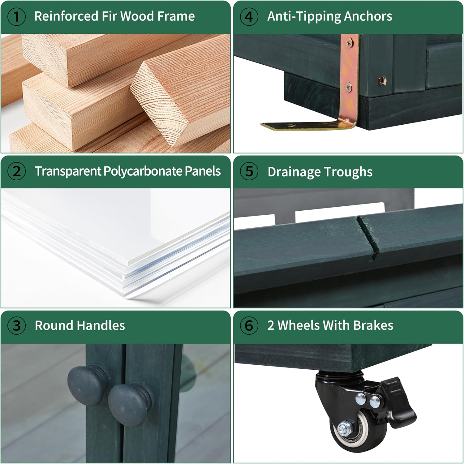 - Durable Fir Wood & Polycarbonate Panels β Built with 100% natural fir wood and UV-resistant polycarbonate panels that diffuse sunlight evenly, protecting plants from harsh rays while maintaining optimal growth conditions for seedlings, herbs, and winter crops.