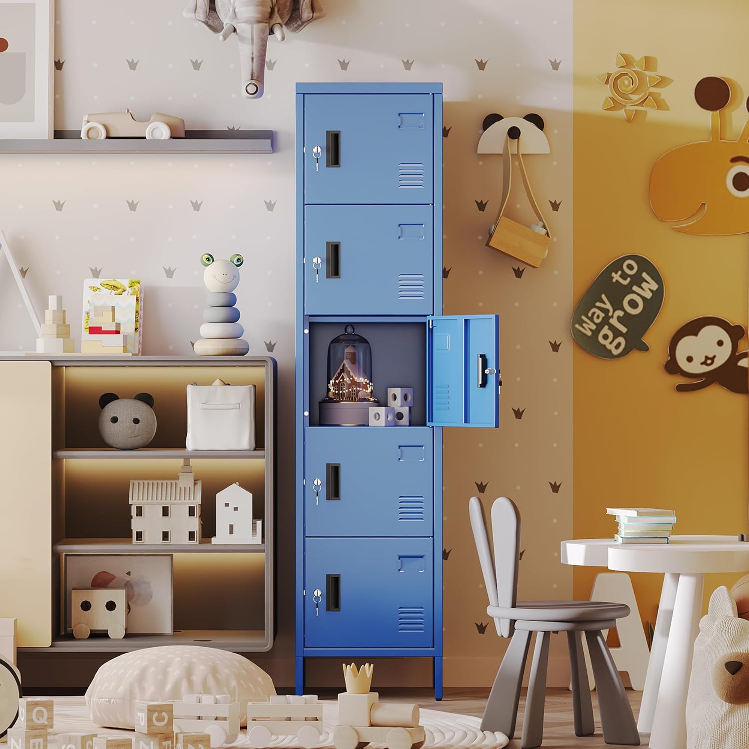 METAN Metal Storage Employees Locker with 5 Lockable Doors,Locking Storage Cabinets for Small Spaces,Home,School,Gym,Assembly Required,Blue