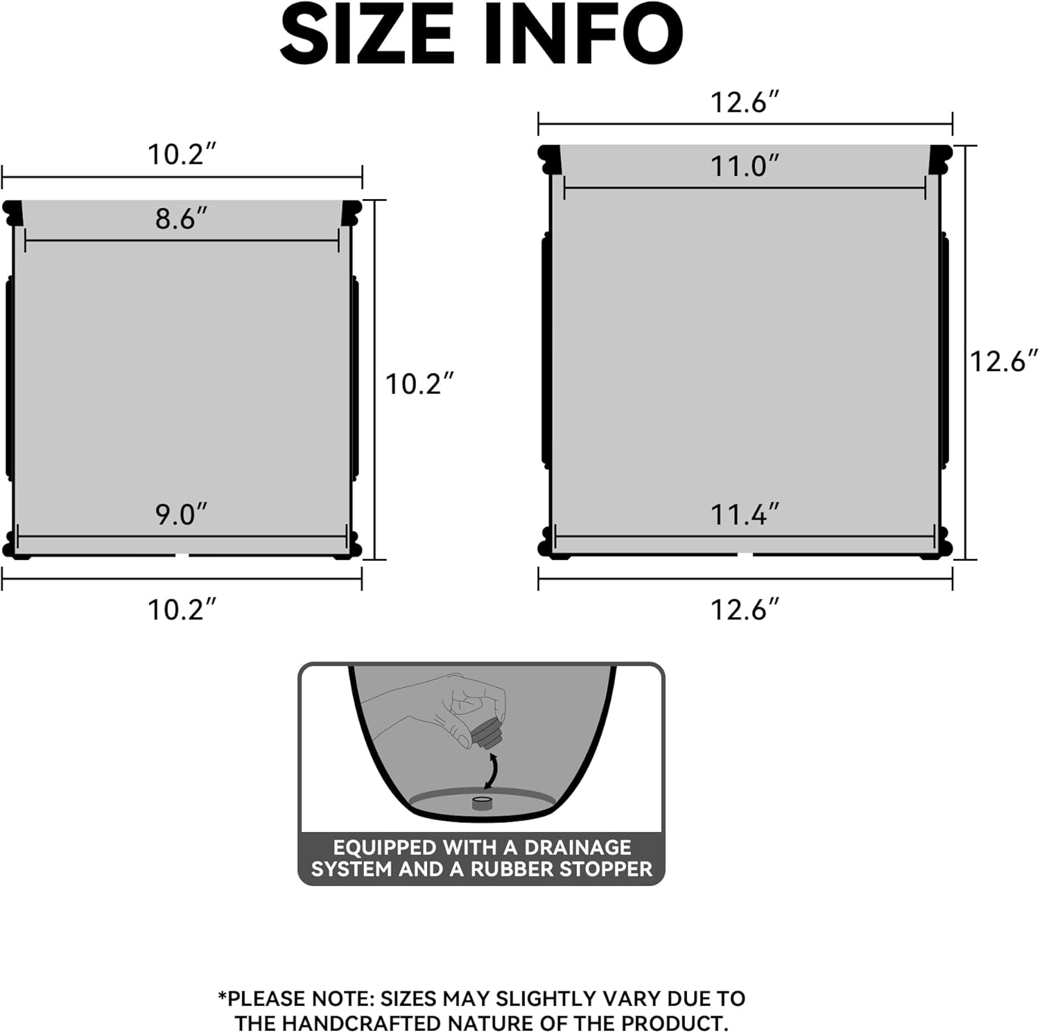 - Drainage System - Our planter pot boast drainage holes for optimal water control, each furnished with a rubber plug for indoor or outdoor adaptability. Simplify your gardening routine with easy maintenance, ensuring a healthy environment for your plants.