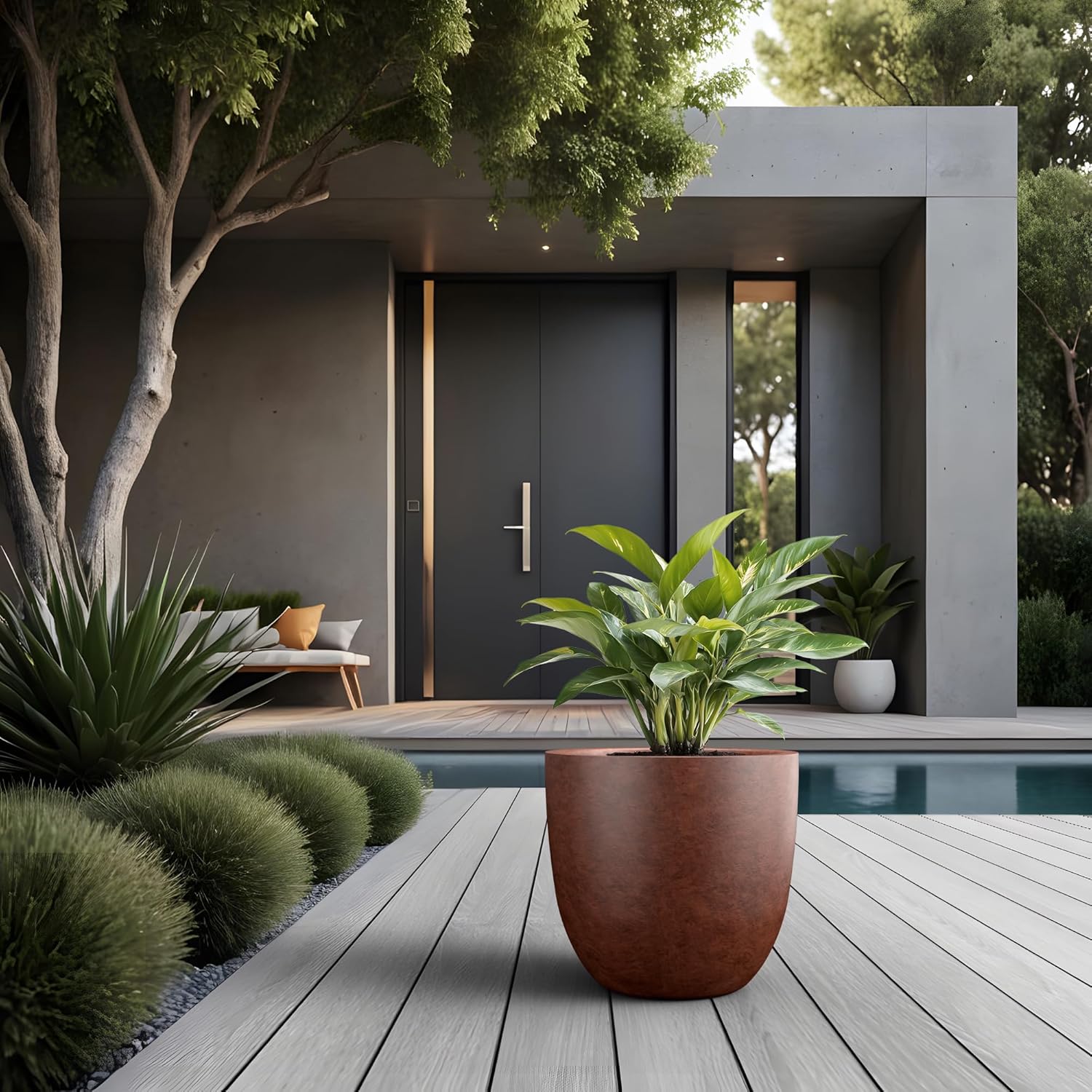 Kante 14 Inch Dia Round Concrete Planter, Indoor Outdoor Large Plant Pot with Drainage Hole and Rubber Plug for Home Patio Garden, Rusty