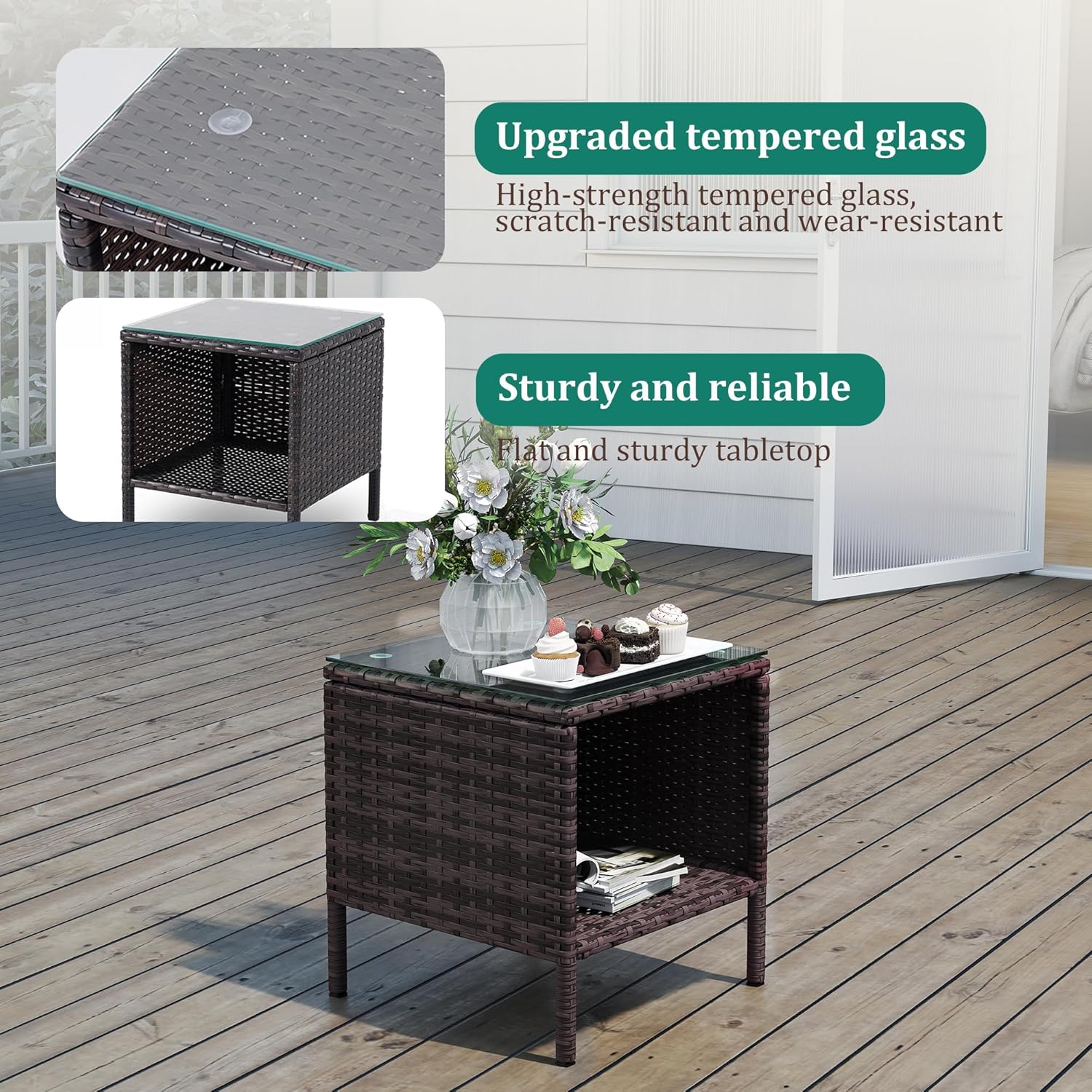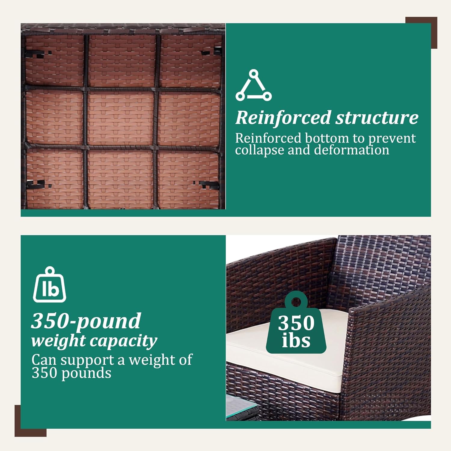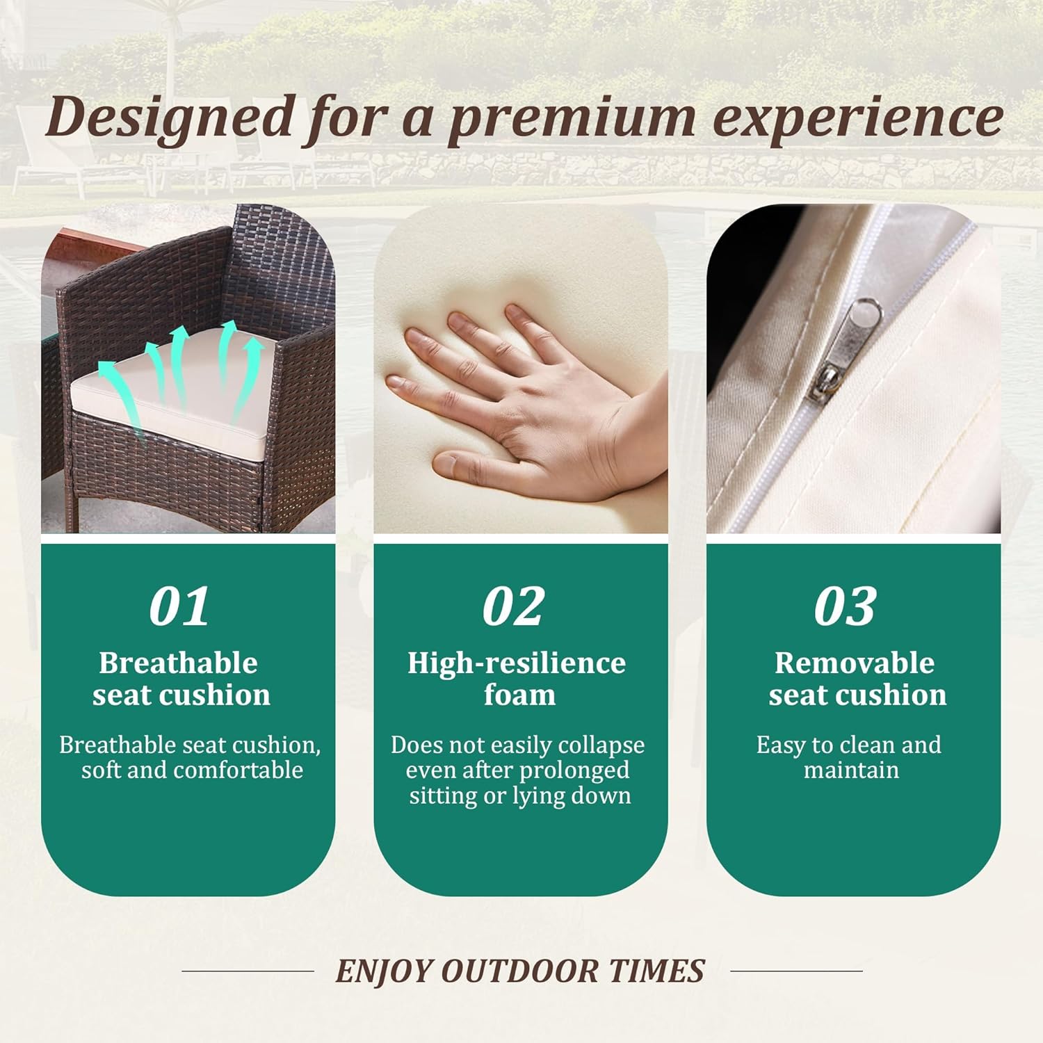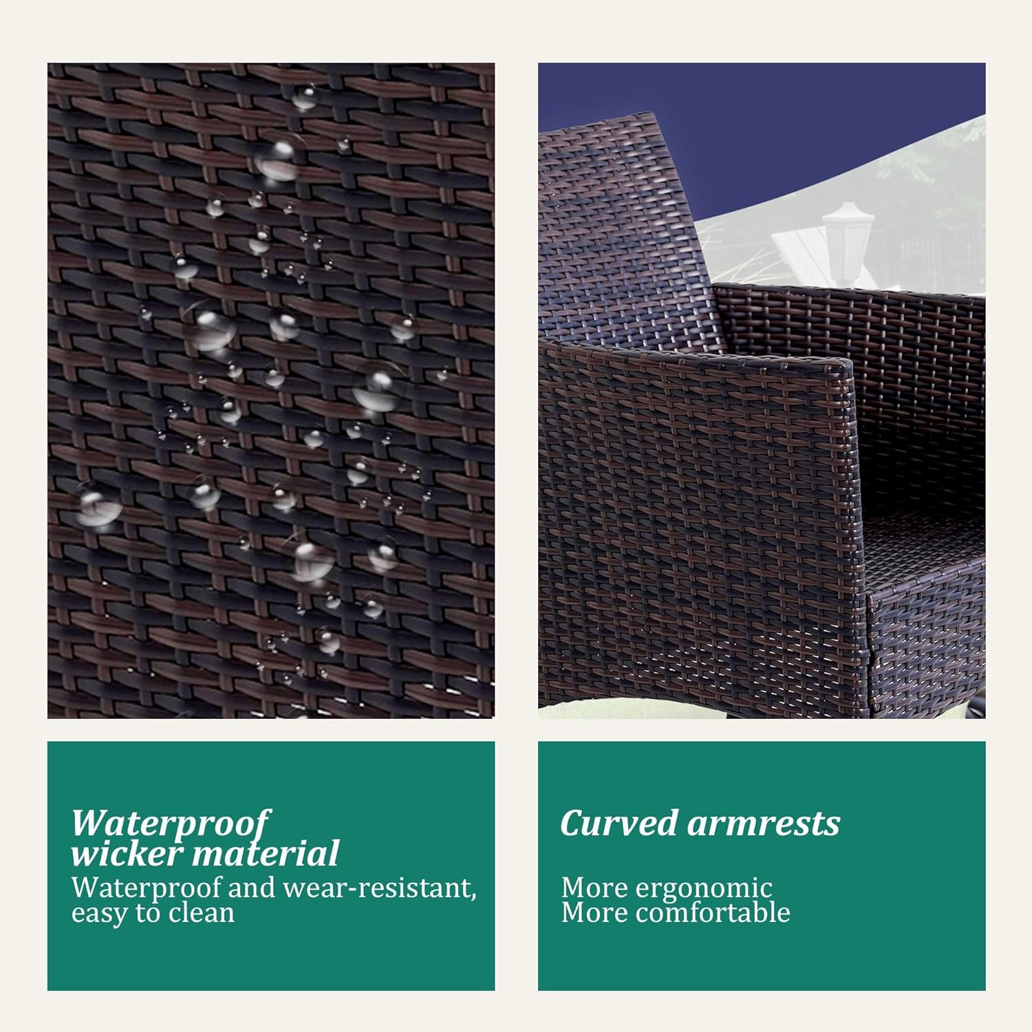 - 【Complete 3-Piece Set】 Includes 5 main furniture (1 Coffee Table + 2 Chairs + 2 Seat Cushions). Everything needed for instant outdoor living