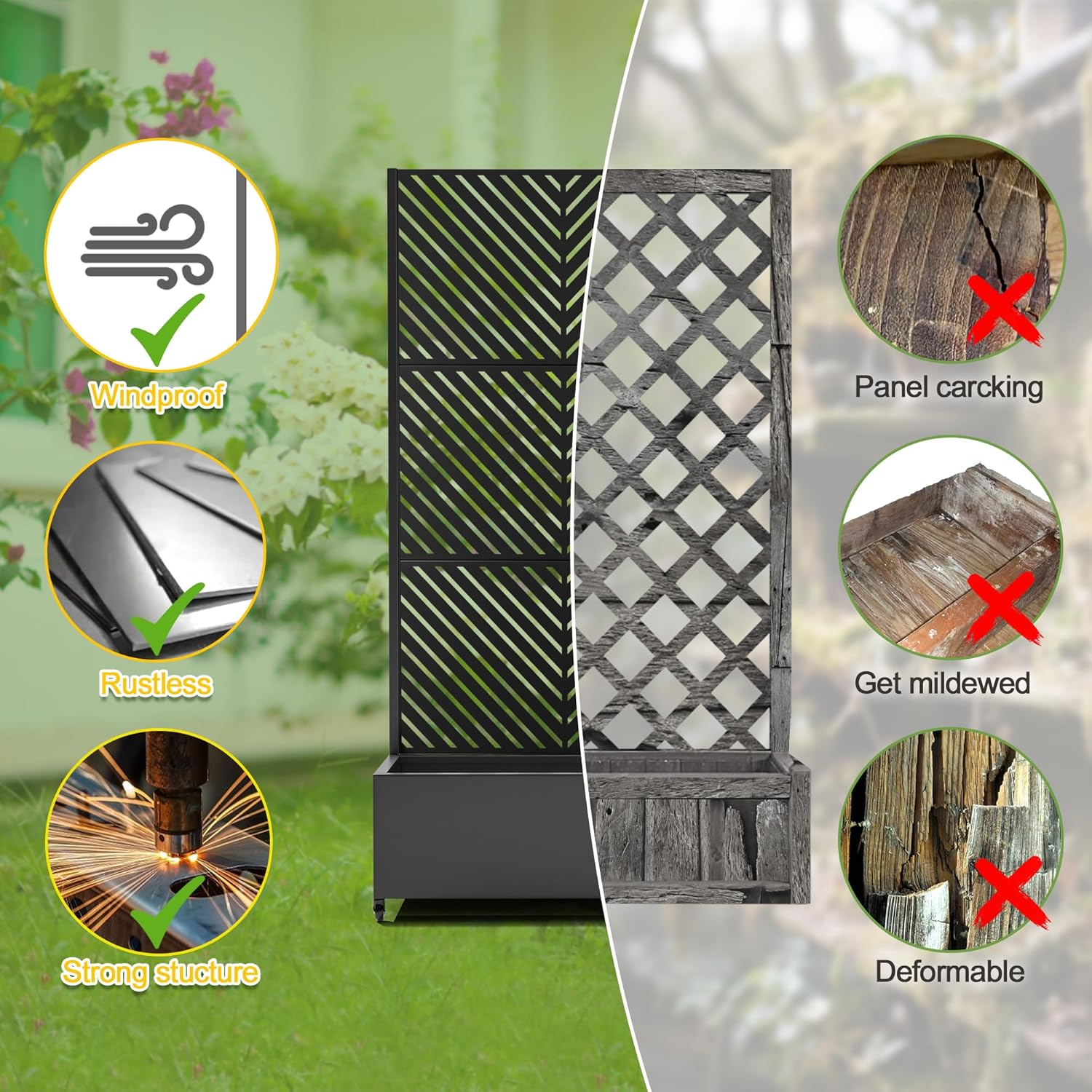 FENCY Metal Raised Garden Bed with Wheels and Trellis,73"x35"x16" Planter Box for Climbing Plants, Vegetables & Vines, Features Privacy Screen and Drainage Holes (Black-Arrow)