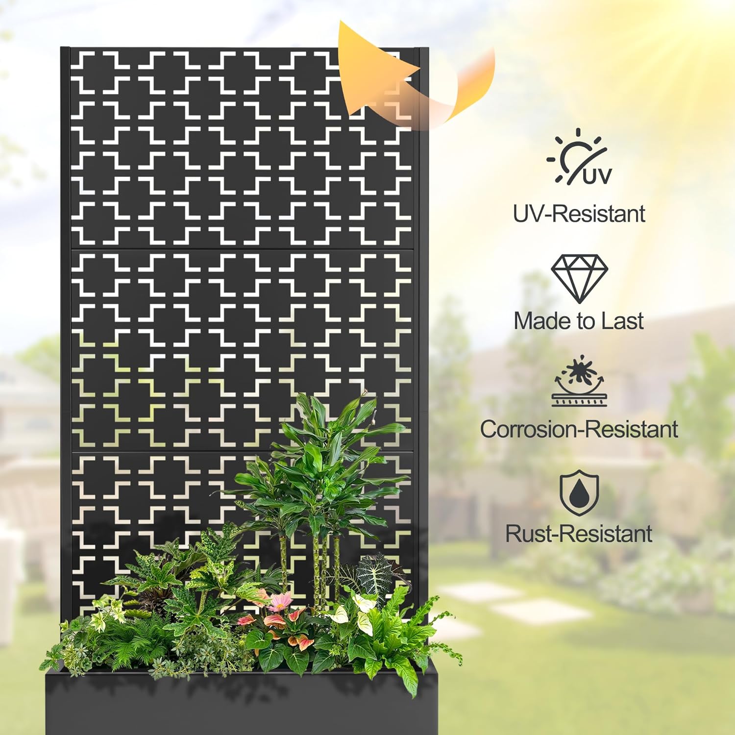- Suitable for Various Environments This planter with trellis is ideal for gardens, balconies, patios, and greenhouses, perfect for growing flowers, fruits, vegetables, and herbs. It also serves as an privacy planters for patio, creating a tranquil space. Ideal for beautifying your area or enhancing privacy.
