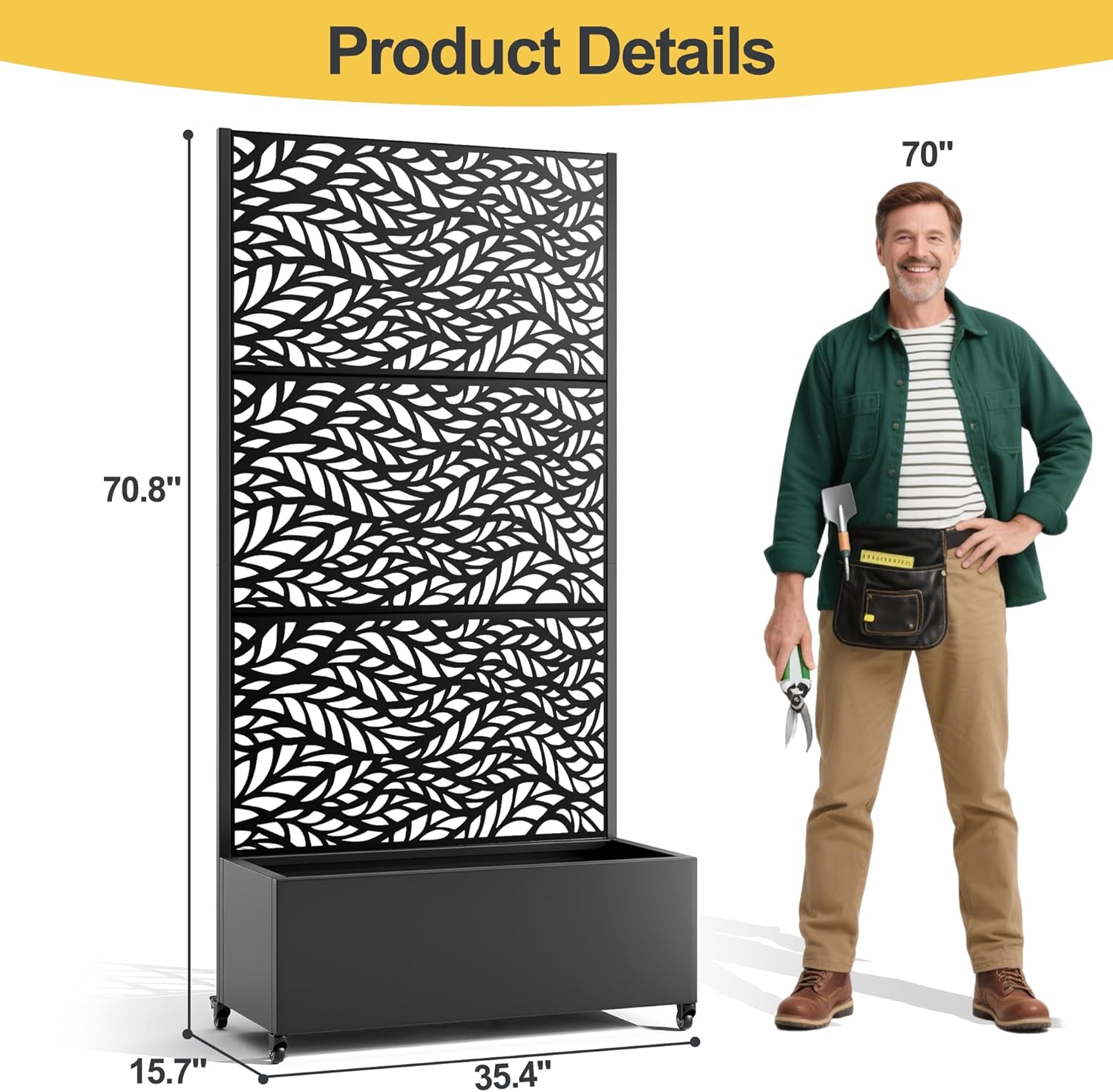 - Graceful Planter with Trellis: This graceful planter trellis is 73 inches tall, offering ample support for climbing plants and enhancing your garden or patio. Its robust design ensures stability in various conditions, making it perfect for a stunning vertical garden display.