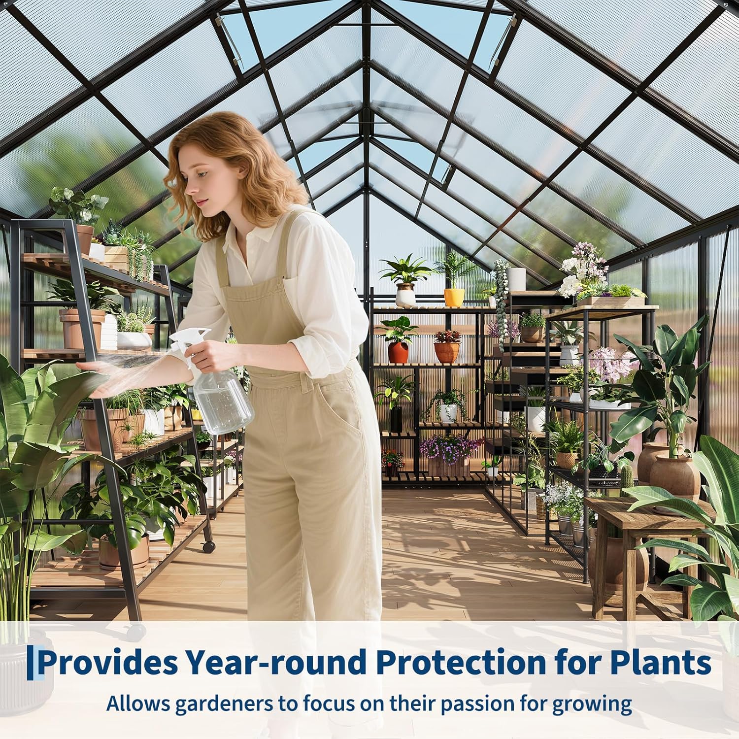 - 【40-Minute Quick Assembly】Say goodbye to tedious installation processes. Our innovative quick-install system features slide-in panels and pre-drilled components, rigorously tested over 500 times. Compared to traditional greenhouse models, it increases assembly efficiency by 40% and improves structural stability by 35%. This means you can spend less time setting it up and more time indulging in your passion for gardening.