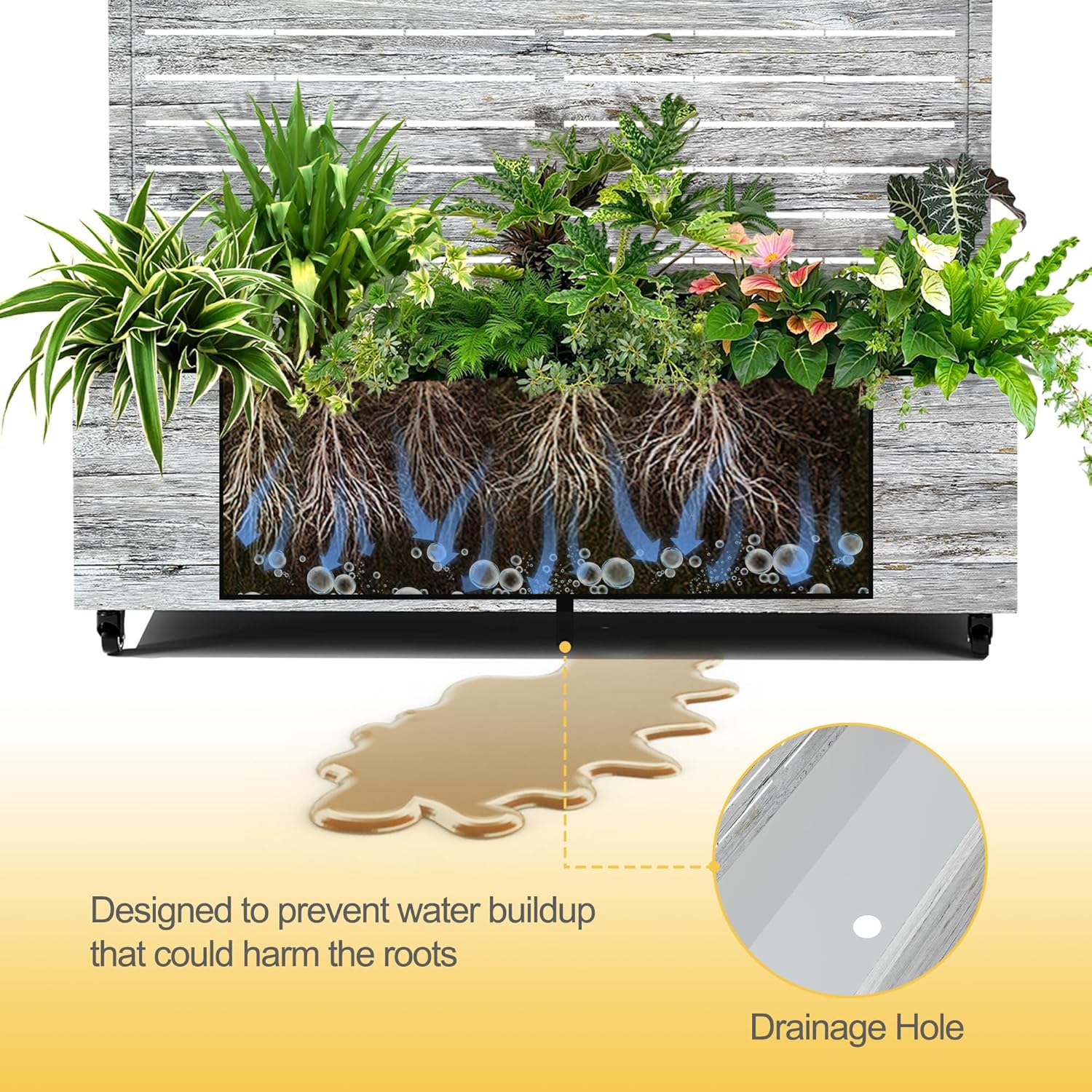 - Built-in Drainage System This planter box features a 12-inch deep planting bed equipped with drainage holes to effectively prevent water accumulation, ensuring plants receive the proper moisture for healthy growth. This design helps maintain optimal soil moisture levels and avoids issues caused by overwatering.