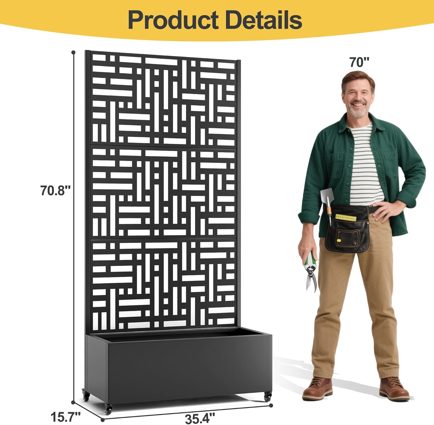 - Graceful Planter with Trellis: This graceful planter trellis is 73 inches tall, offering ample support for climbing plants and enhancing your garden or patio. Its robust design ensures stability in various conditions, making it perfect for a stunning vertical garden display.