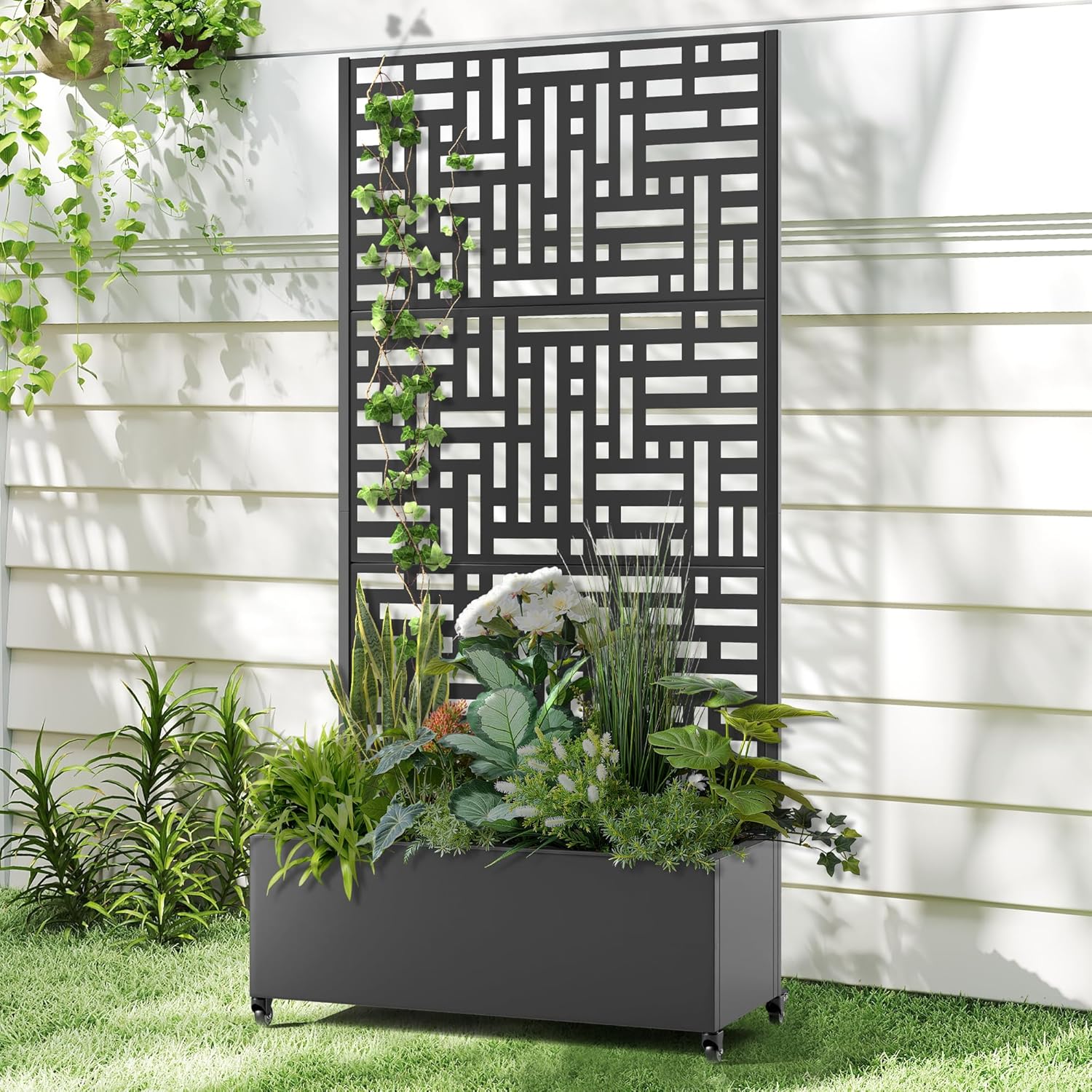 - Suitable for Various Environments This planter with trellis is ideal for gardens, balconies, patios, and greenhouses, perfect for growing flowers, fruits, vegetables, and herbs. It also serves as an privacy planters for patio, creating a tranquil space. Ideal for beautifying your area or enhancing privacy.