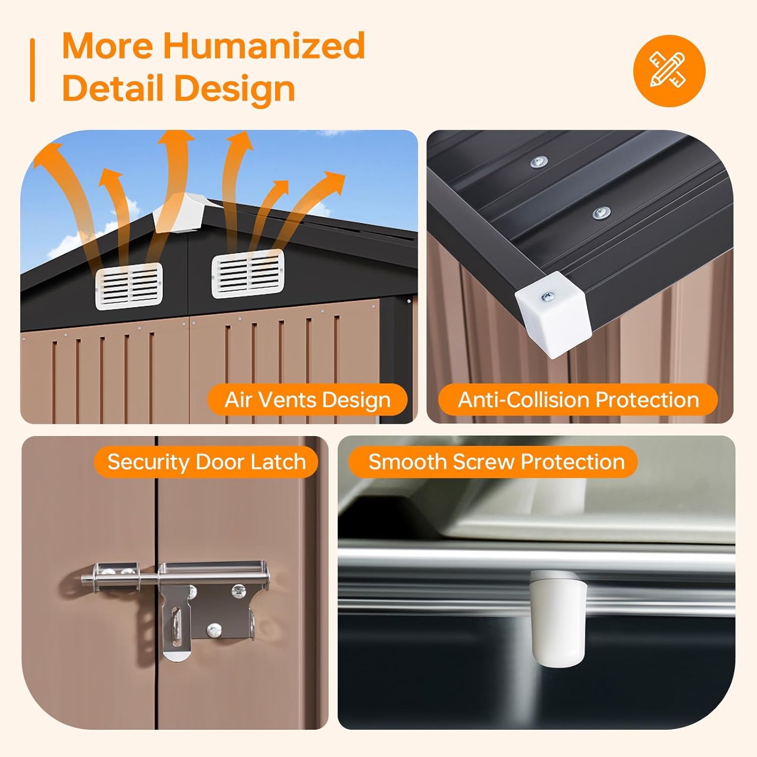 - Robust & Weatherproof Build: This outdoor storage shed is constructed from galvanized steel with waterproof engineering. It delivers enduring resilience against severe weather. Its reinforced metal roof and walls prevent deformation, while the sturdy frame withstands winds up to 30mph (Level 6) and snow loads of 6 inches.