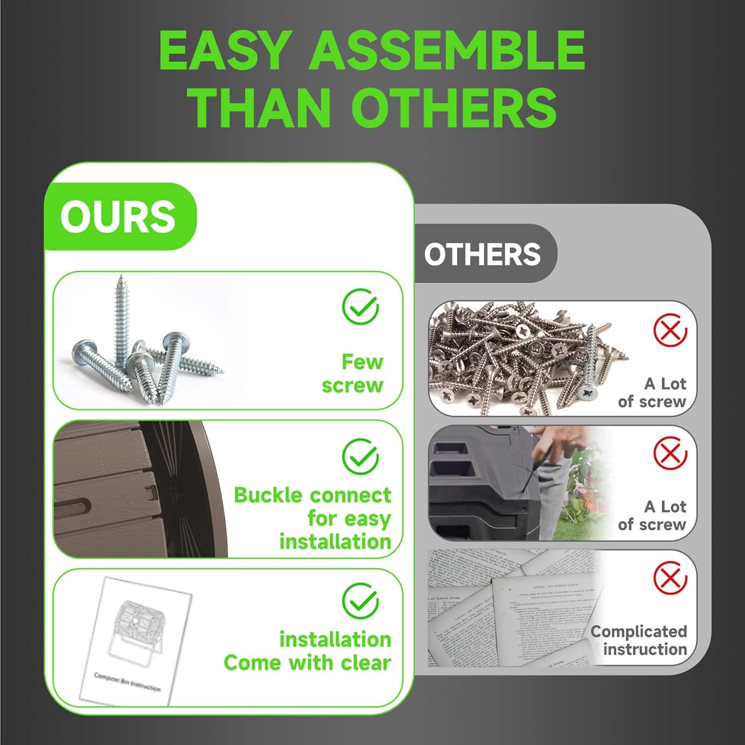 - Sturdy & Durable - Built with high-quality resin and a premium metal frame, this compost bin is corrosion-resistant, weatherproof, and highly durable. Its strong construction ensures long-term stability and reliable outdoor use.