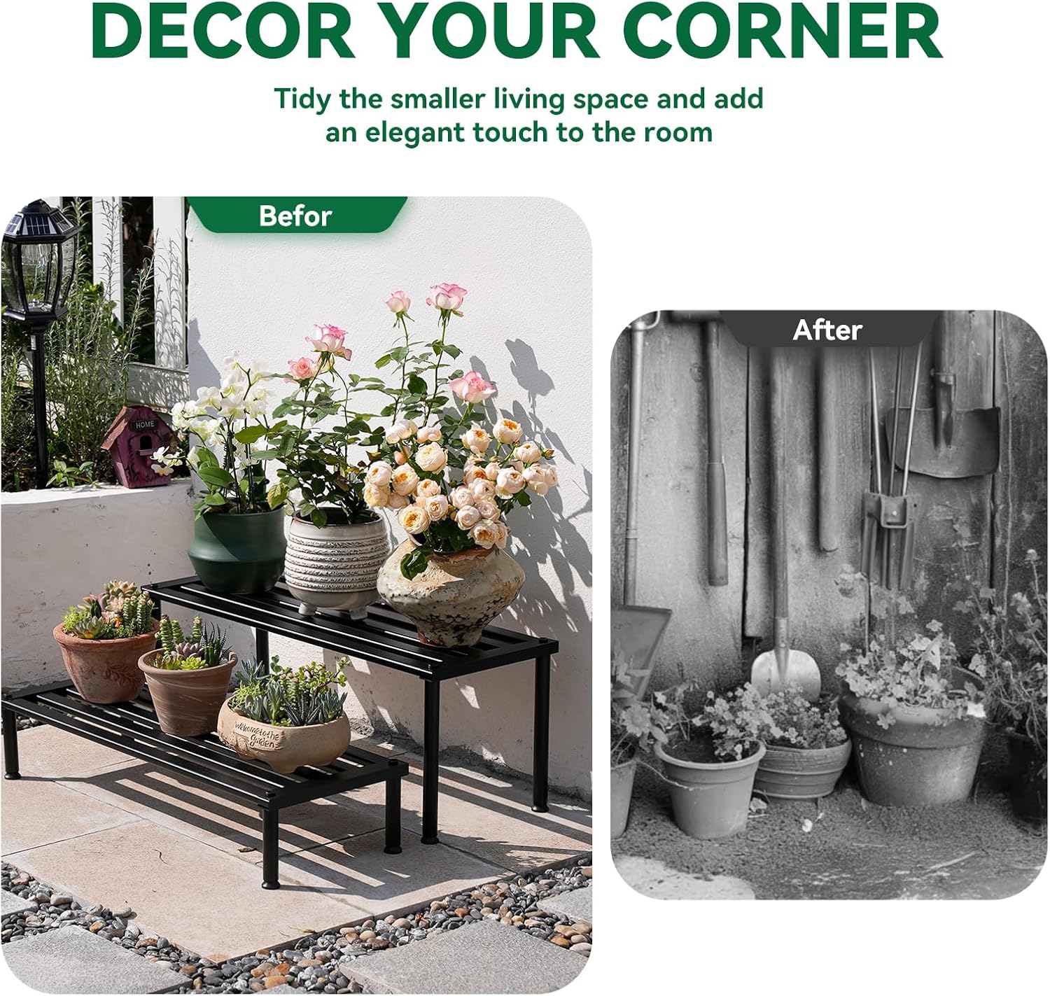 - VERSATILE DISPLAY: Ideal for showcasing plants, flowers, and decorative items in living rooms, balconies, gardens, and patios