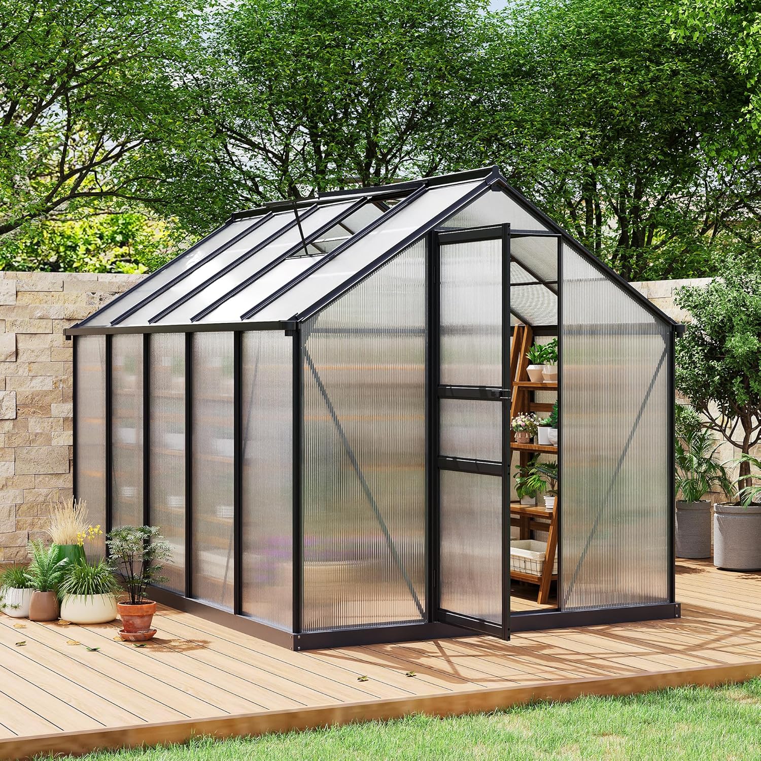 - 【Spacious & Customizable Layout】With generous headroom and smart layout options, this greenhouse offers ample space for shelves, pots, and even seating. Whether you're a beginner or expert gardener, you’ll love creating your perfect green retreat.