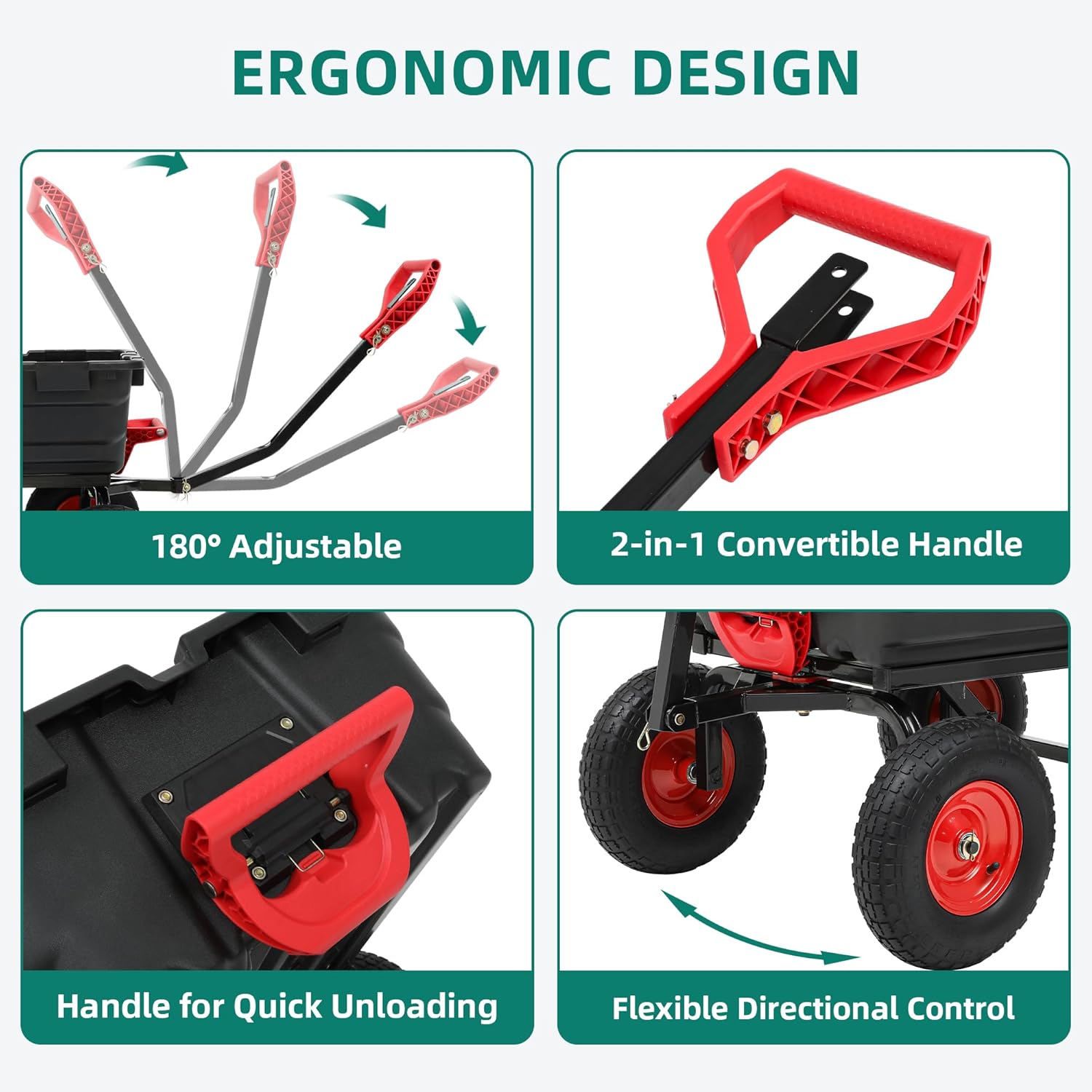 - [Effortless Unloading Design]:Experience rapid unloading with the quick release system on this garden dump cart; simply disassemble the bottom frame or utilize the 180Β° adjustable handle for fast, easy dumping, dramatically doubling your work efficiency.