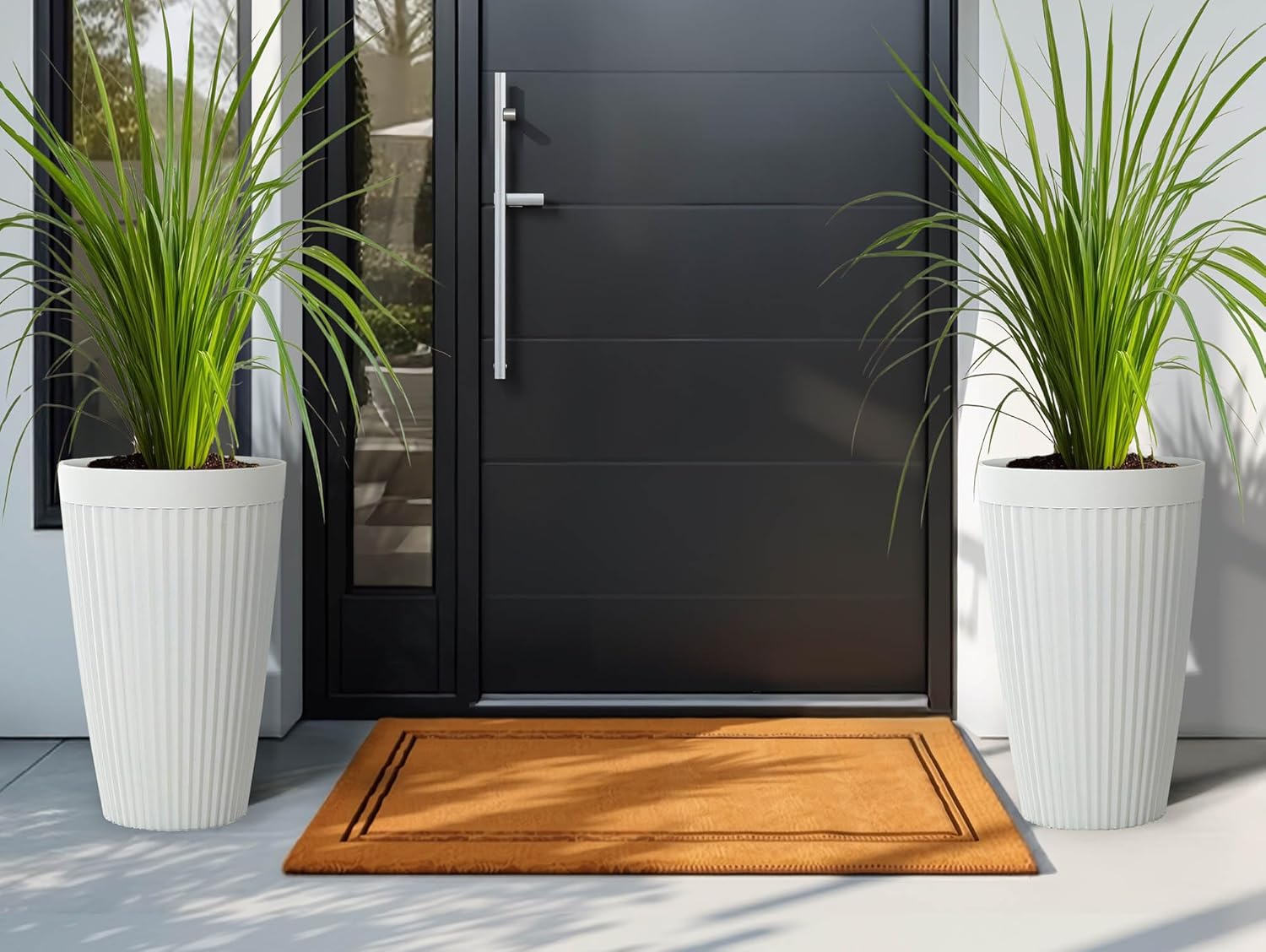 - Timeless Elegance Design: This set of 2 tall planters features a tapered round shape with a handcrafted Matt White finish and elegant 3D fluted texture.Combining vintage charm with modern sophistication,these pot planters brighten up your garden,patio or indoor spaces.Ideal for displaying vibrant flowers,lush plants and fragrant herbs,they create a serene and inviting atmosphere in any setting.