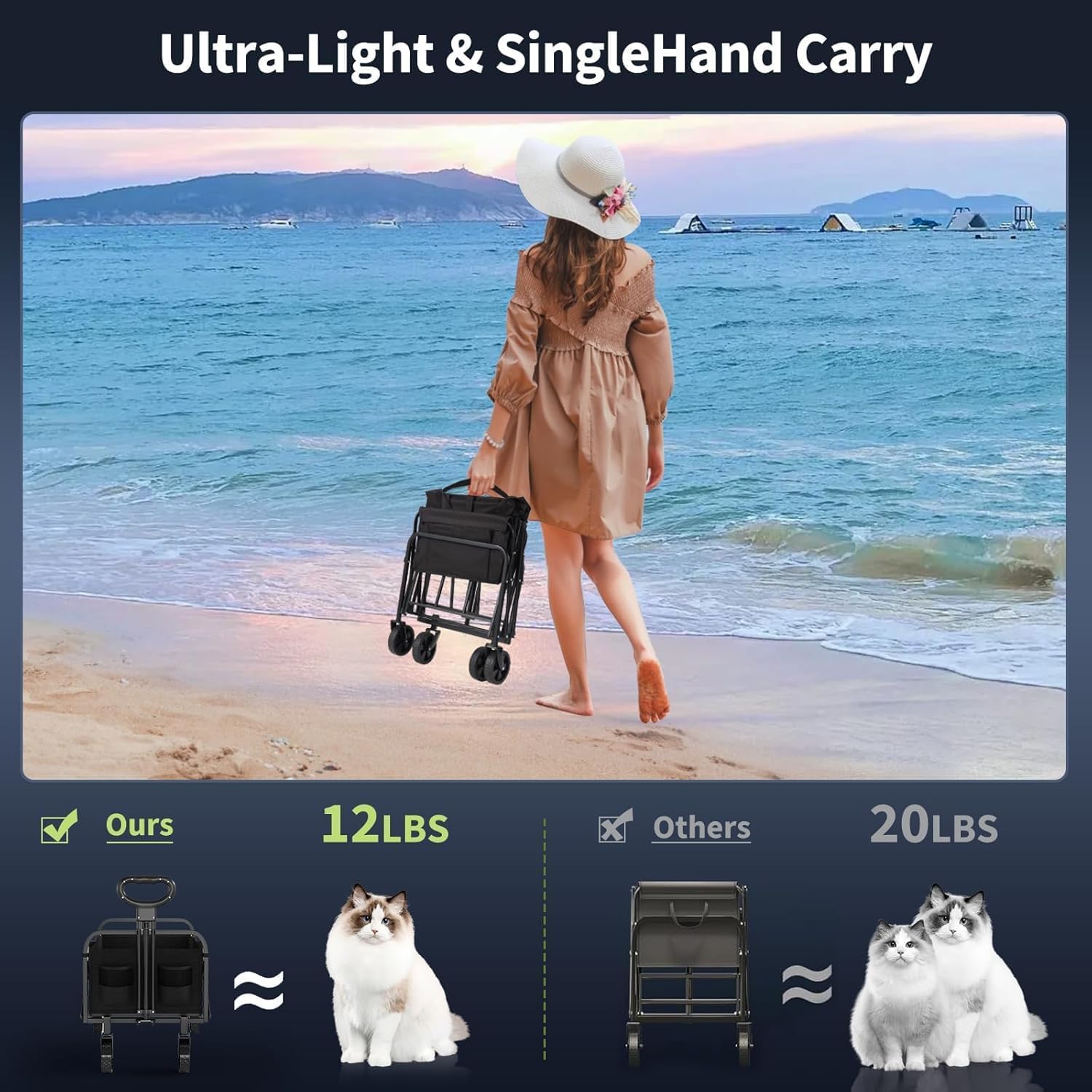 - Ultra-Lightweight yet Rugged, with One-Hand Portability:Despite its robust construction, the entire wagon weighs only 12 lbs, making it incredibly easy to lift and carry with one hand. The rivet-locked frame and abrasion-resistant fabric guarantee long-lasting durability, while the waterproof and removable inner liner makes cleaning a breeze after messy trips.